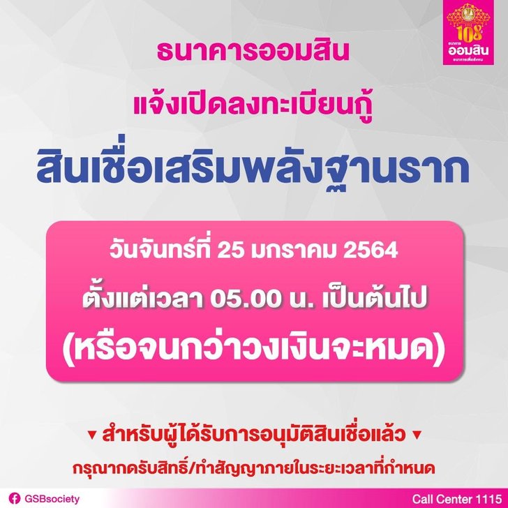 ตรวจสอบผลการลงทะเบียนสินเชื่อเสริมพลังฐานราก กู้คนละ 50,000 บาท กับธนาคารออมสิน แค่กรอก 2 ข้อ รู้เลยว่าผ่านมั้ย?. ขอปิดรับ การสมัครสินเชื่อเสริมพลังฐานรากชั่วคราว เนื่องจากมีผู้ขอเข้ามาใช้บริการเป็นจำนวนมาก สำหรับผู้ที่สมัครเข้ามาแล้ว ธนาคารจะยังคง. โดยจะสมารถกดได้จนถึงวันที่ 30 ธันวาคม หรือวงเงินกู้ 10,000 ล้านบาทได้หมดลง #สินเชื่อธนาคารออมสิน 1 วันรู้ผลอนุมัติ สมัคร #สินเชื่อเสริมพลังฐานราก ผ่าน app mymo ได้แล้ววันนี้ วงเงินสูงสุดไม่เกิน 50,000 บาท ไม่. เข้าใช้งาน mymo ไปที่เมนู สมัครสินเชื่อเสริมพลังฐานราก หน้าจอ mymo จะแสดงข้อความ คุณผ่านการพิจารณา ให้กด ถัดไป